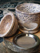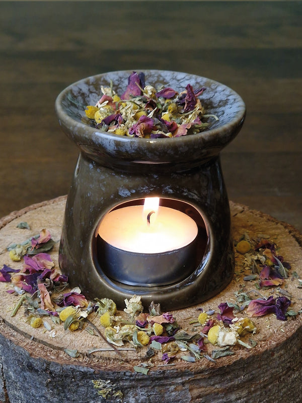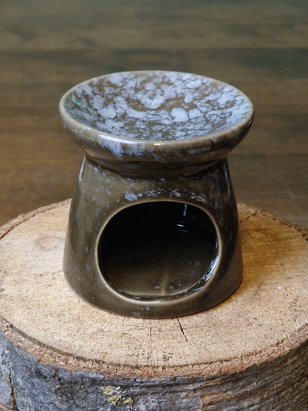 Stenen olieverdamper voor het verdampen van bijvoorbeeld essentiële oliën of waxmelts. Losse kruiden kunnen hier ook in gebruikt worden, maar dit geeft niet zoveel geur af als op een brander met een zeefje.